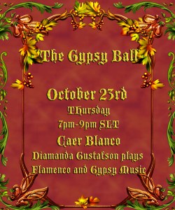 October 23rd at 7pm-9pm SLT ~ Gypsy-Themed Dance on the Grounds Surrounding the Castle of Caer Blanco.