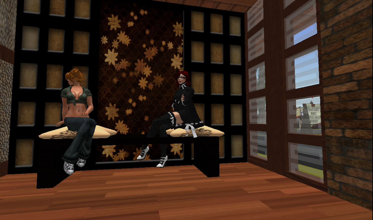 A different sort of work party was underway at Kessa Corvale’s site.  Every time I walked by her build, I saw her dancing away as she rezzed huge prims and moved them about.  When I stopped in to chat, she was joined by two friends who joked and, more importantly, were keeping her appraised of sports scores while she worked.