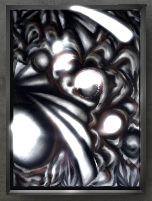 Kips: Mostly, yes, I became interested in abstraction as a young artist because I was interested in expressing emotions… when I’m working in RL, I work with the idea of setting my hands free to create. I don’t “think”, or try not to think, about composition or figure or form. My goal is to simply let my hands move, and allow the chalk or crayon to simply trace, or record that movement.