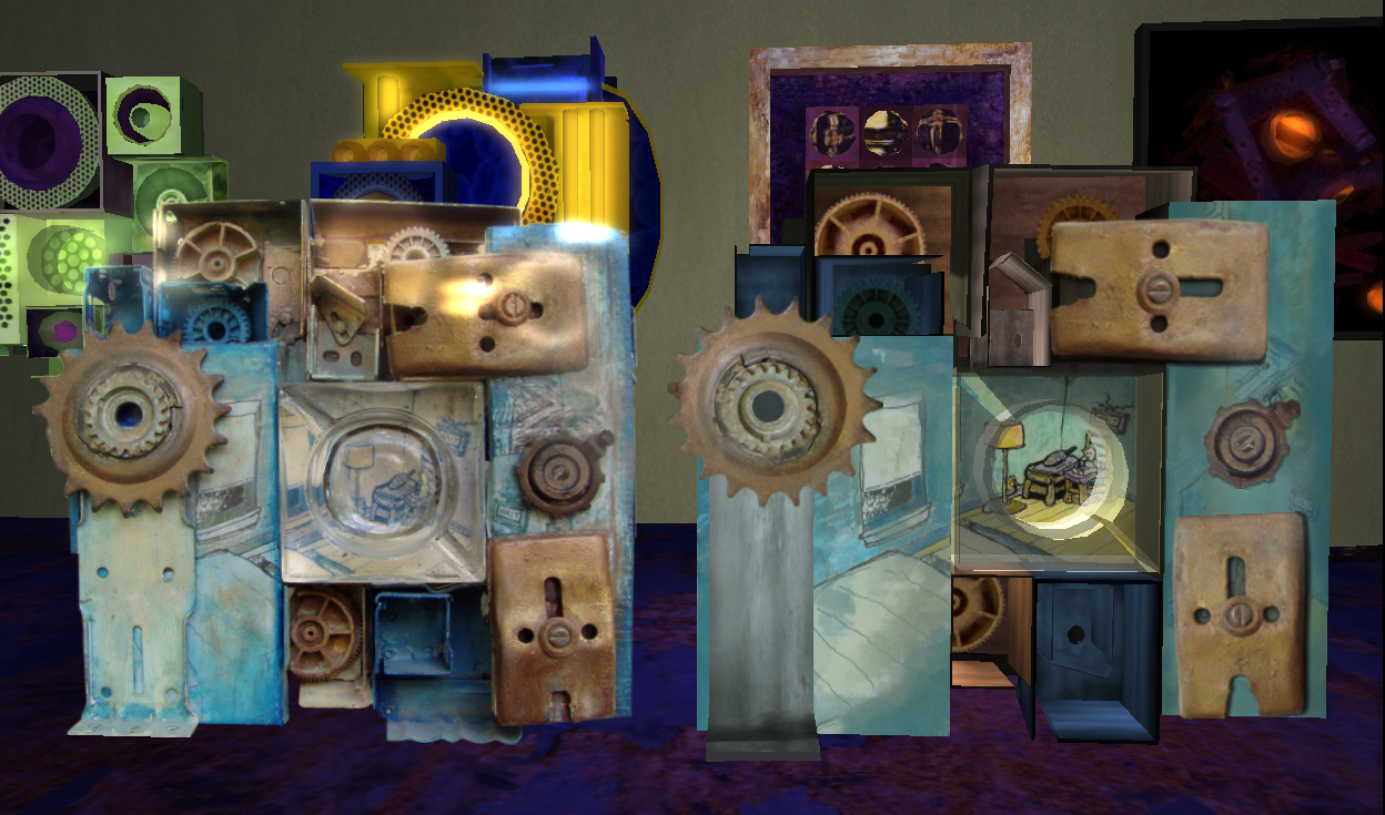Scottius Polke: Yes all made of pieces of junk that I collected, as well as one of those evening doodles (smiles). The middle glass piece is an ashtray, and some of the boxes are venetian blind holders. I first translated about 8 of my rl pieces in this manner and showed them at Zachh Cale’s project Z gallery which was at the old Cetus District.
