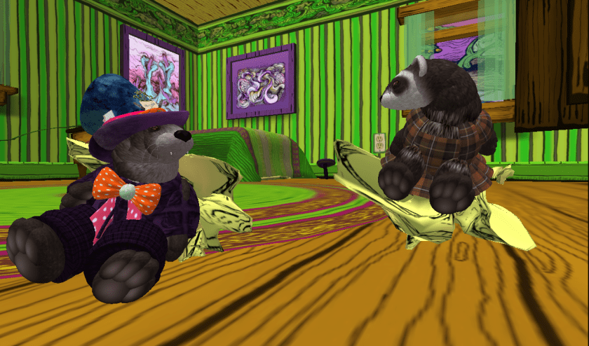We teleported over to mushROOM so I could chat with him a little more while flinging each other about on crumpled balls of paper.