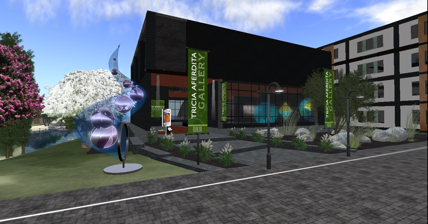 Tricia Aferdita Gallery first opened in Cetus Gallery District in the spring of 2007. On August 22, 2008, the gallery moved to its current location in Avalon Town. We’re celebrating the gallery’s second year in Avalon Town and more than three years in business with a party at the gallery! Starting at noon on Sunday the 22nd with the entertaining rock guitarist Simon Voix, then the amazing DJ Skott Westland will take over the stream with music to party to. New works will be featured by both GM Nikolaidis and Raven Haalan, currently on exhibit at the gallery. Don’t miss the fun!