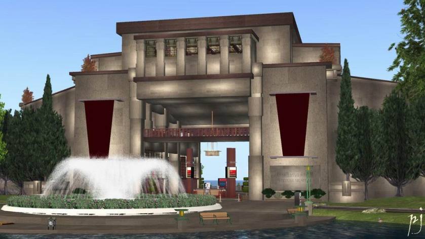 One of my own concerns (and I know I was not alone in this) was the amount of power the original Licensing Agreeement (LA) gave to the Foundation, in terms of requiring their approval for so much of what the Museum did. I understand why it was there – as it is their responsibility to protect the name of Wright, they needed to see that we weren’t a bunch of amateurish builders creating anything and calling it ‘Wright’ (and we know builders like that are out there).  However, part of the initial LA process was, in fact, that the Assistant Director of the FLWF Archives came in-world to review the builds, and was by all accounts very impressed with what the former FLWVM had accomplished. These same builds were, as the Board and Staff understood it, grandfathered in to the LA, and were the only FLW replicas ever allowed on the sim.