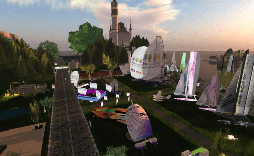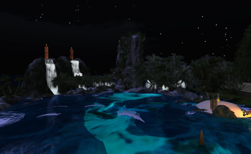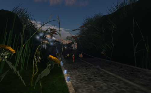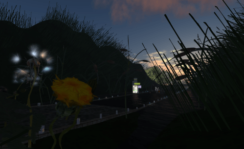 Through the waters of the marsh and another sim crossing, bees the size of dogs tend the plants as we cautiously pass them by. As we crossed the water we passed from RFL Knowledge into RFL Life.