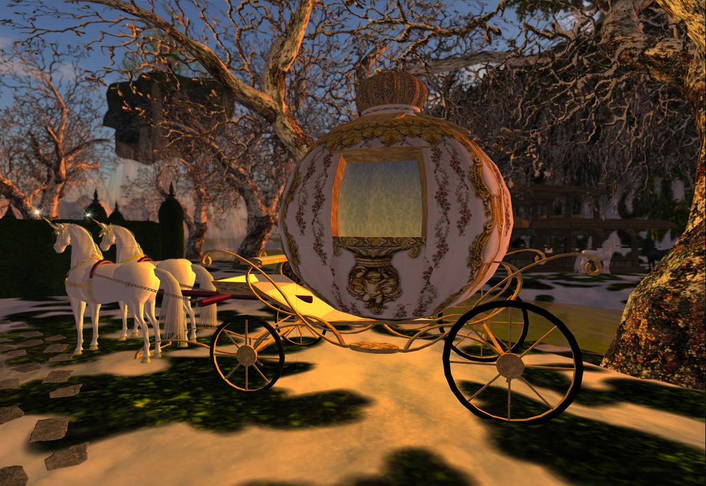 One arrives in Avilion Grove at the bottom of the steps leading to a large pavilion – the Grand Ballroom. Imagine then, you and your beloved are in black tie attire. She is, perhaps, wearing a special piece of jewelry. A gift from you. As the beauty of the scene unfolds before the two of you – blooming trees, twinkling stone walkways, a fairy-tale carriage being pulled by unicorns – she winds her arm through yours and whispers in your ear that she is so pleased to be spending the evening alone with you.