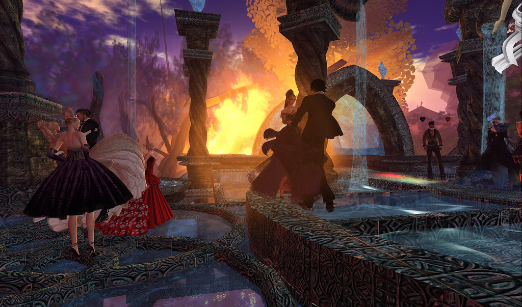 If you and your lover are feeling more adventurous, climb the rocks of the waterfall on the Isle as the eagles fly overhead. You will be richly rewarded with a crisp, cool cave behind the falls where you may dance in a more private setting. Other areas for the adventurous or playful at heart include the Faerie Garden and the Game Room. In the garden where the faeries play, the two of you might decide to jump onto a large dandelion seed in order to take a floating tour of the space. The game room, which sits high above the rest of the region, is a place where you might decide to take another couple or two along with you. There are several tables set with games to play – including Truth or Dare, which is always fun. Once all the games have been played, then you may choose to remain high in the sky. Feel free to do so as the music and dances have been provided for your enjoyment in this space as well.