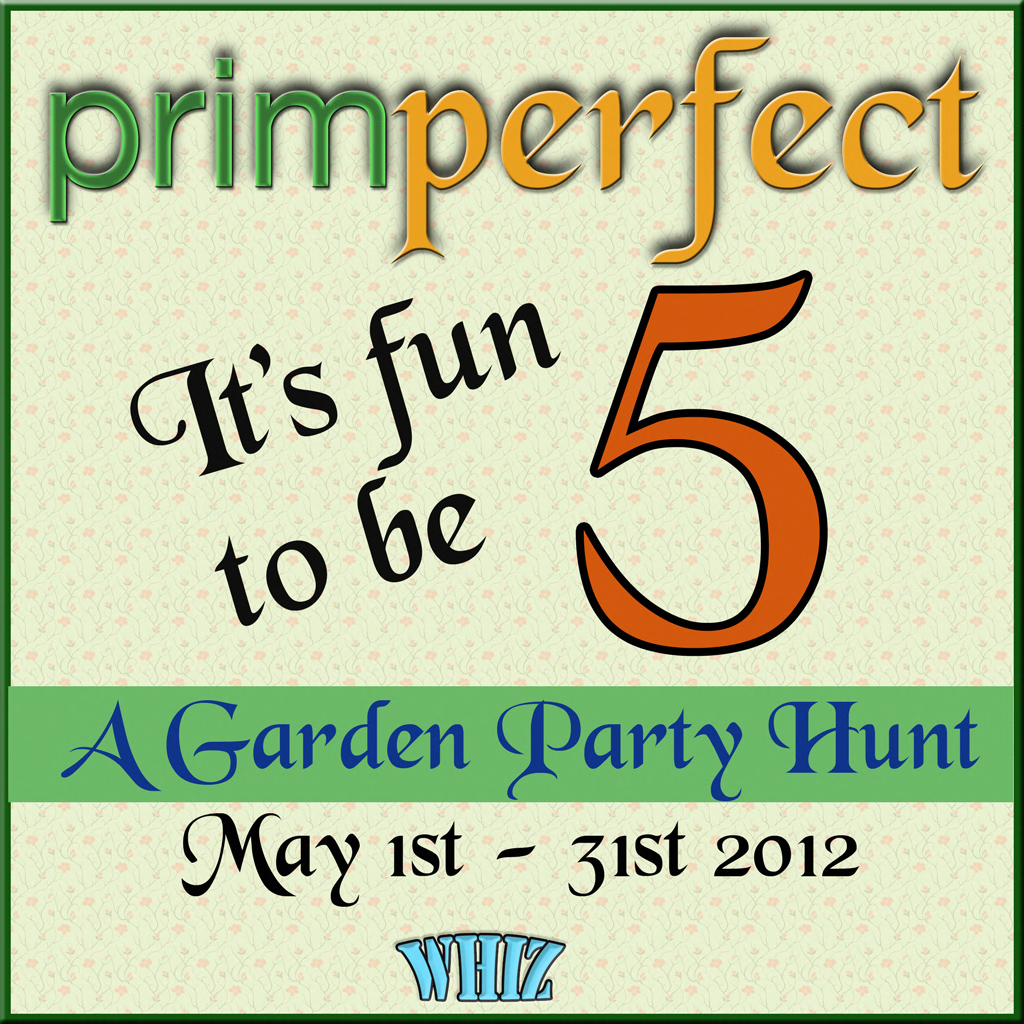 The hunt will run from May 1st – 31st and the theme is a Garden Party (birthday, celebration, spring). Even though this is a Prim Perfect Hunt, in celebration of our Fifth Birthday, we are inviting all creators to join in – so – as well as home and garden designers – fashion designers, skin makers, hair stylists and other creators are all welcome to apply to help us celebrate five amazing years!
