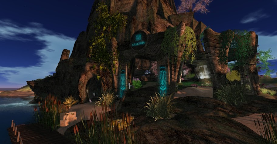 Having decided that I would revisit a sim from each of Prim Perfect’s 5 years in honor of the magazine’s anniversary, it was with some trepidation that I began reviewing the issues to determine what places I might highlight. I was pleased and relieved to discover that Cave Rua, the landscape of the month in the very first issue in May 2007, is still in existence. Most of us have experienced the heartbreak or shock as favorite sims have disappeared from our virtual worlds.  Worse yet may be the feeling one experiences when the sim is still there – is perhaps called the same thing – but has changed character so completely that it is difficult to even make one’s feet move once things rez.  Sometimes, though, the sims remain as we recall or have even improved in theme or design.