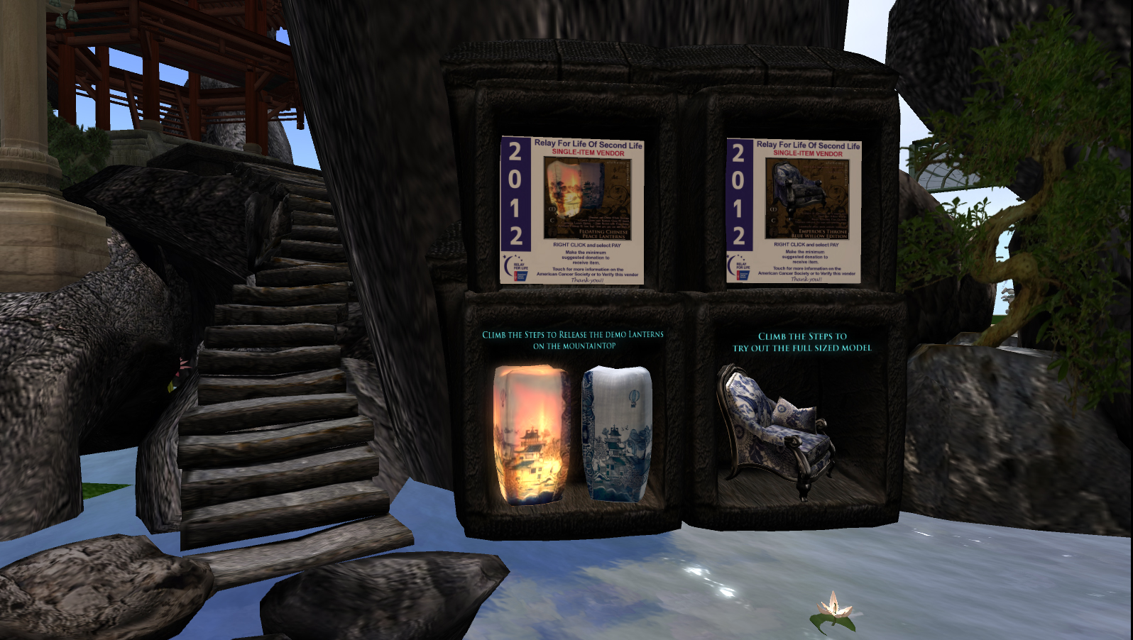 As participants in the “Home and Garden Expo 2012,” we created this lantern as one of the items we donated to to help raise money for the American Cancer Society through the SL Relay for Life.
