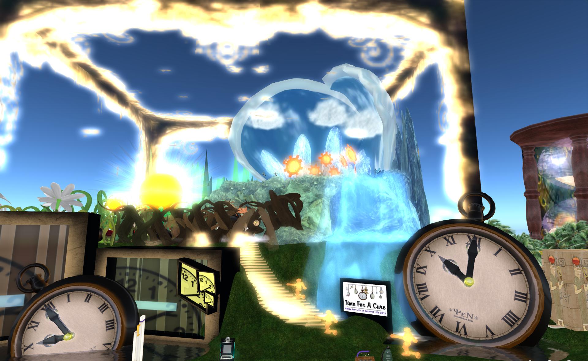 Suitbaly attired in low lag outfits we are ready to begin. Stepping into the random teleporter on Relay For Life Island we feel a buzz of static energy passing through us, it emits a burst of light and with a rushing sound we are transported to our designated start point.