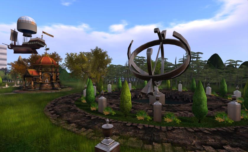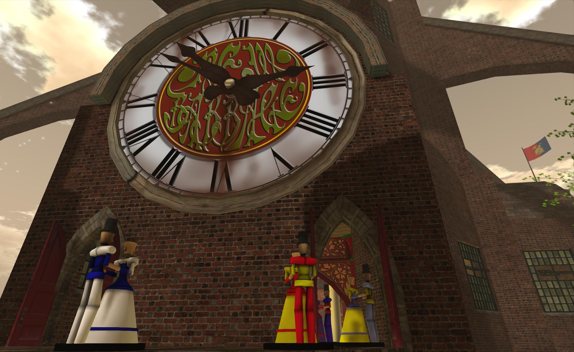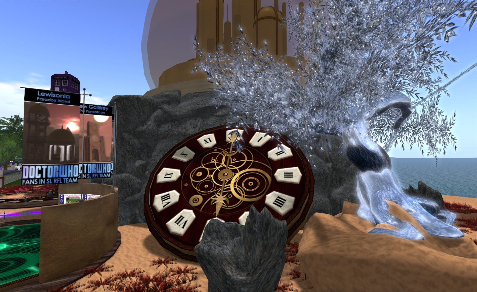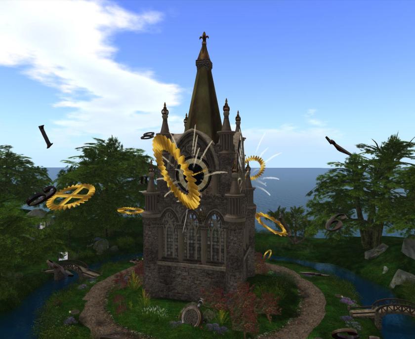 And now on to my team’s build. New Babbage, this year the team led by Nathaniel Lorefield has constructed a clock tower, in true New Babbage style. The tower features 4 clock faces each of which has a different function, a clock to tell the time, a calendar, a planetary motion dial and a counter that counts the number of unique avatars that pass by.