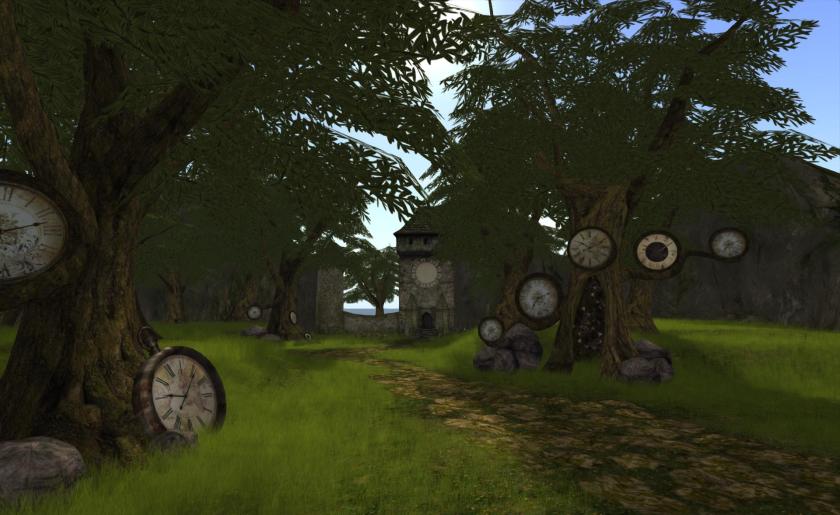 Rynn Verwood has graced us with a wood where time grows on trees. The beautifully rendered scene has watches of allshapes and sizes hanging from and growing out of trees as we follow a winding path through the landscape.
