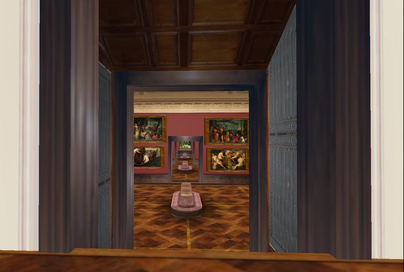 That’s very true. Designing Worlds, over the near five years of its existence has built up a really rich archive of Second Life and – to a lesser extent – other virtual worlds. Today’s jigsaw is an example of that – the Dresden Art Gallery. This was a loving and exact re-creation of the real world art gallery, with proportions and locations meticulously copied. Travelling through it not only showed you the art but gave you an idea of the dimensions and shape of the rooms. It was the next best thing to visiting the real world gallery and, interesting, the average avatar spent slightly longer exploring it than real world visitors spent in the Museum.