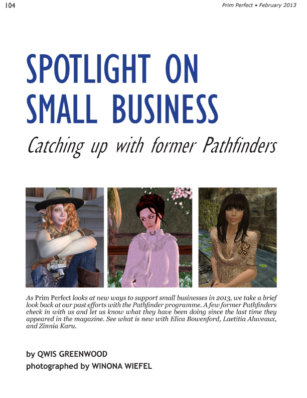 On top of all that, this month sees the amazing event One Billion Rising—a global event that celebrates women even as it raises awareness of the issue of violence against women—and we here at Prim Perfect are delighted to be playing a part in organising the Second Life version of this event. You can read more about this in Honour McMillan’s article on Page 16.