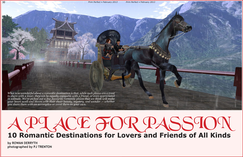 Welcome to a New Year and a whole new range of features in Prim Perfect magazine, as well as those you know and love! And, as it is February, we have a wealth of features and information about romance and romantic locations in Second Life.