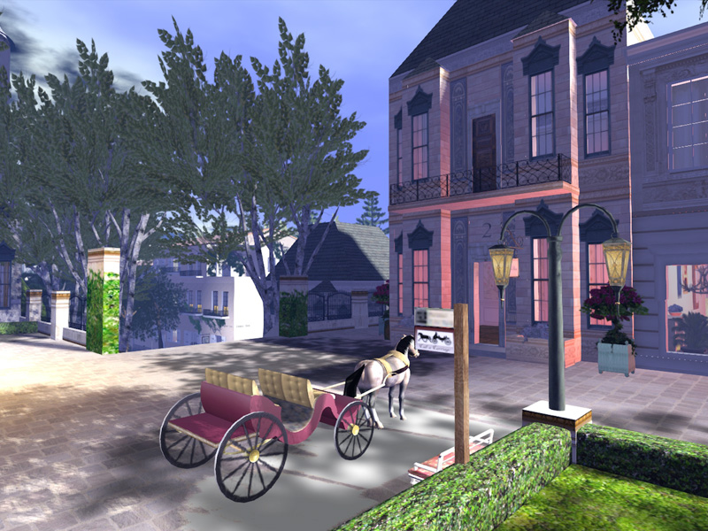 If you are a visitor, you will find frequent carriage stops throughout the regions. When you summon a carriage, instead of – somewhat unrealistically – rezzing before your eyes, the horse and carriage come along the road and pause at the stop for you to embark. You are offered a wide choice of destinations too, based not upon region names (which might not mean too much to the visitor, but on themes instead such as romance, or shopping.