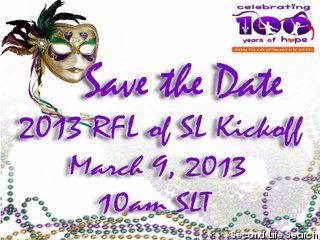 Relay for Life 2013 starts today with a four hour celebrations party in the special Relay for Life Kick Off sims: RFL Kickoff 1, RFL Kickoff 2, RFL Kickoff 3 and RFL Kickoff 4.