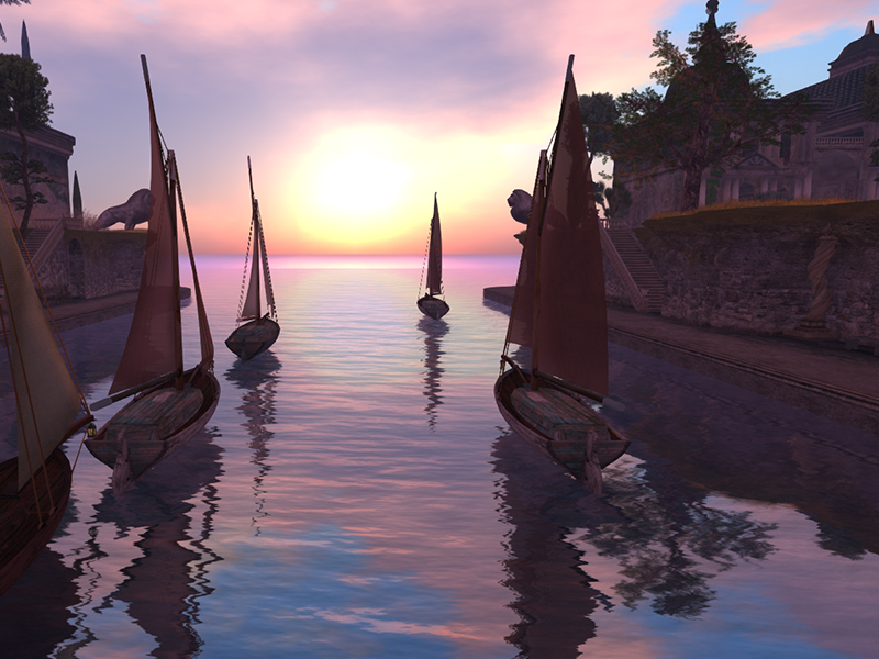 No-one does grand quite like Alia (as visitors to his region The Tides at Fantasy Faire 2012 will doubtless recall). Once again, Alia has created an outstanding build which, in spite of magnificence, is also strangely tranquil – perhaps best symbolised by these graceful ships, forever sailing towards the sunset in the land of summer palaces and elegant gardens.