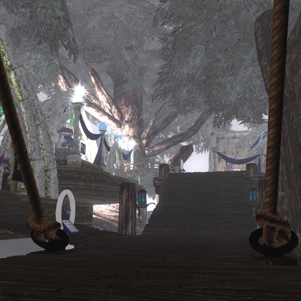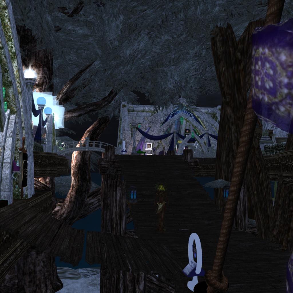 A light blanket of snow frosts the forest floor, it is night and all is quiet and serene. Resting high in the treetops above us is the elven enclave of Yuale Nura. Bathed in moonlight, the homes glow warm in the deep blues and purples of a winter’s night. The winter holds the forest in stasis, none of the colourful flora that we saw in Fairelands junction have remained to see the winter through. The forest is frozen and barren awaiting the rebirth of spring.
