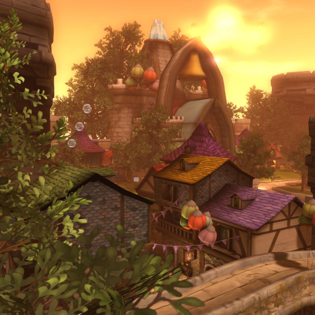 The sky settles to a misty orange glow, that should tell you immediately thay Kayle Matzerath, of Garden of Dreams, is behind this fantasy city. Kayle has created a wonderful medieval fantasy city that tells its story without words. A grand castle looks over a tiered garden beyond which narrow cobbled streets wind around the castle walls. Bunting hangs between houses, the bridges carry bunches of bright balloons. The city is preparing a celebration and it is for us to live the tale.