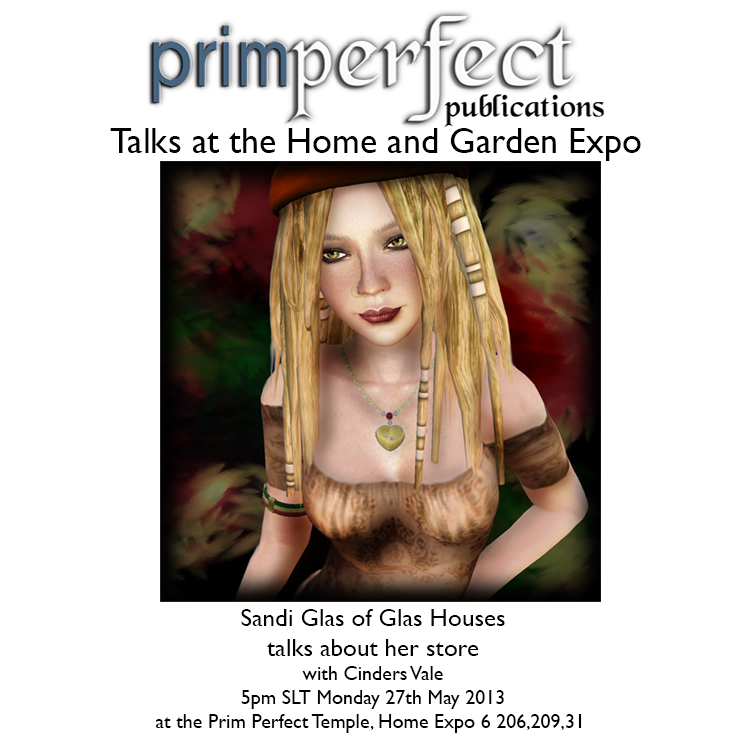 Sandi will be talking about her store at 5pm – and you can visit her exhibition at the Home and Garden Expo right behind the Prim Perfect Temple and cafe.