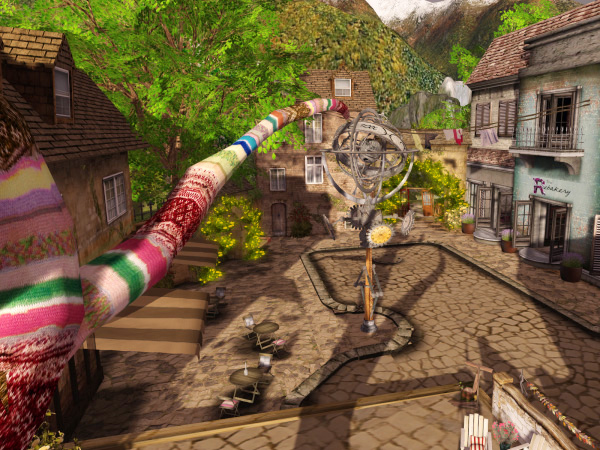 Today’s jigsaw is another from Honour McMillan’s wonderful blog, Honour’s Post-Menopausal View (of Second Life), This time it’s taken from a post about Jasmine’s Hollow & The Dirty Grind – which is definitely worth reading in full! I spotted some buildings by Kayle Matzerath, but what particularly caught my eye in this post was the wonderful knitted tree created by Vitrail Illios – who spells his name with characters I don’t dare to reproduce!