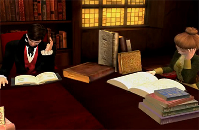 Today’s jigsaw comes from Season 1 Episode 3. Miss Alleyn takes Quinn to help her with her researches in a rather special Library – where the Librarian’s command to “shhhhh” should be taken rather more seriously than usual – and Quinn discovers some rare and dangerous volumes.