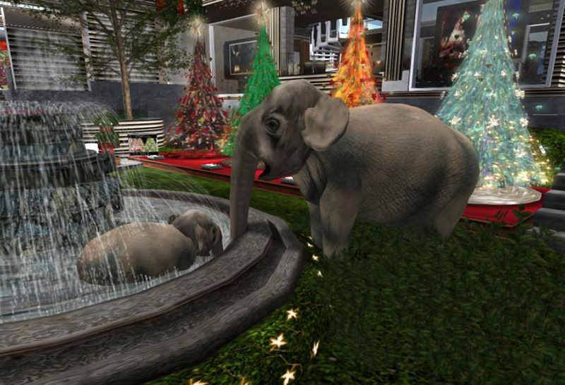 I know that not everyone celebrates Christmas, though you know that feeling which I am sure every culture has an authentic resonance to, a sort of optimism about the World and it’s people laced with genuine happiness ? I’ve felt it daydreaming in the sun, sitting on the decks of boats listening to music, I’ve felt it when a parent said they were proud, I’ve felt it playing in sand as a child, I’ve felt it watching my son laughing to the point I’ve had to remind him to breath and I’ve felt it because of the strength of the Second Life Community rallying to support Save the Elephant Foundation. In fact I’m feeling it right now & though I’ve shed genuine tears for the plights of elephants in recent weeks I feel certain now that things will continue to change. Not sure why I’m ranting, Baby Elephant Navann says it so much better with his body language that I do with mere words.