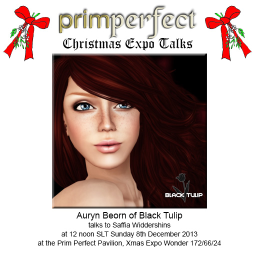 At 3pm pm, Saffia will be talking to Auryn Beorn about her store, Black Tulip, and about her amazing scripts.
