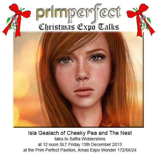 At 12 noon SLT, Saffia will be talking with Isla about her store, Cheeky Pea about her beautiful store and her shopping region.