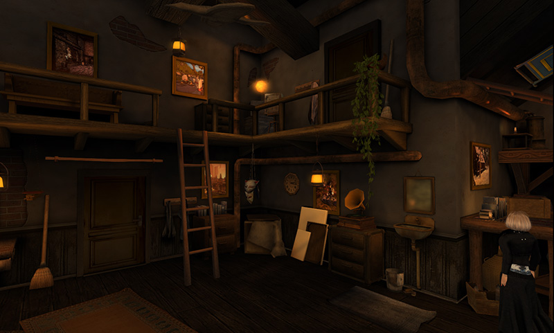 We’ve never had a Dream Scene that was so detailed and while building it we had our own story in mind that might fit to the person who lives ..lived? there and what his life must have looked like. But instead of telling you our story, we want you to tell us yours. Who ever tells us the most funny or heartbreaking or whatever story of that atelier or its inhabitants is going to WIN a complete set of all 35 Dream Scenes available worth more than 60.000 L$. If the winner wants to, we will even publish it in our next notice.