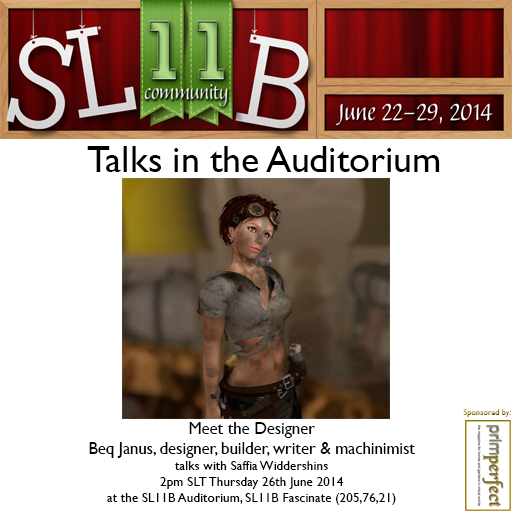 Jessica Lyon, Beq Janus and Jo Yardley are the guests today for the Prim Perfect Talks in the SL11B Community Celebration Auditorium