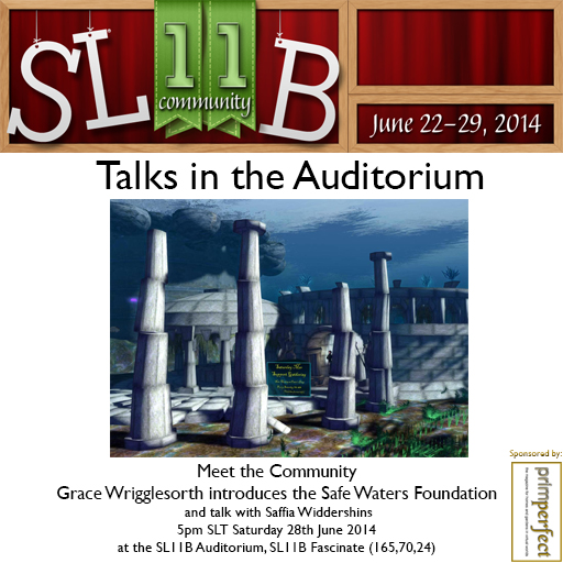 And finally, at 5pm SLT on Stage 2, Saffia Widdershins will be talking to Grace Wrigglesworth (and possibly some pirates too!) about the Safe Waters Foundation and life the the Fanci’s Deep – as a mer or as a pirate!