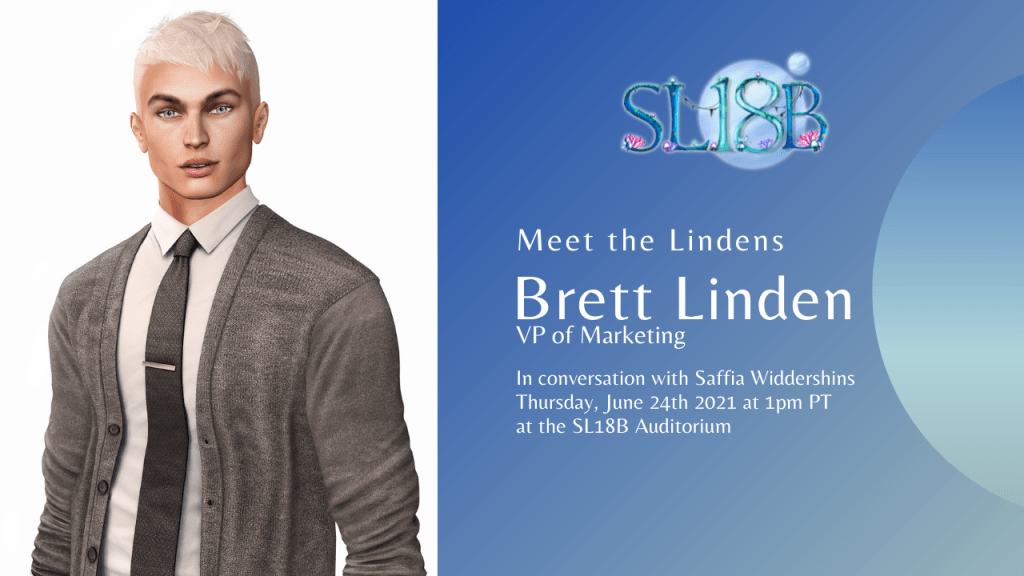 This year, she’ll be talking to Patch Linden, VP of Product Operations on Tuesday 22nd at 1pm SLT, Grumpity Linden, VP of Product (who’ll be talking about technical issues) on Wednesday 23rd at 2pm SLT, Brett Linden, VP of Marketing on Thursday 24th at 1pm SLT.