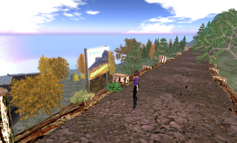 In this show we start by exploring Second Life Route 6, the High Mountain Road, in the company of Simple Wunderlich, as we ride from the end of the Great Wall of Second Life in Spini to Simple’s vertigo-inducing (and very lovely) Mountain Retreat in Plebeja – sadly no longer here.