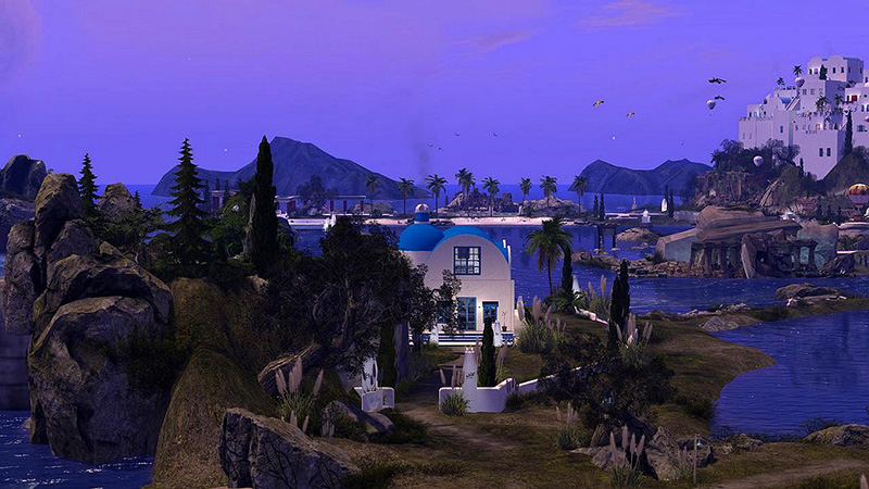 Today, Monday 21st February, Designing Worlds returns to one of our favourite locations – Calas Galadhon – to learn all about the FlyGearz dance troupe who are based there. And we couldn’t resist the opportunity to catch up with Tymus Tenk and Truck Meredith and learn all about their build of the New Santorini!