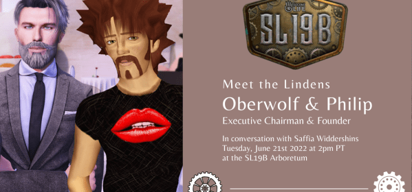 Today, Tuesday 21st June at 2pm SLT, in a pre-recorded session, Saffia will be talking to Oberwolf Linden and Philip Linden, talking about strategy, the