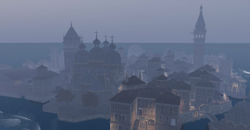 Venexia is an adult roleplay sim with a vampire theme. It’s set in a time when La Serenissima, the beautiful Venice that inspired this region, was at the height of its power and, some would suggest, its decadence. This stunningly lovely region, created by Baal Zobel and Kora Zenovka, certainly promises both power and decadence, and the enthusiastic patrons have evolved a rich and complex roleplay, befitting the surroundings.