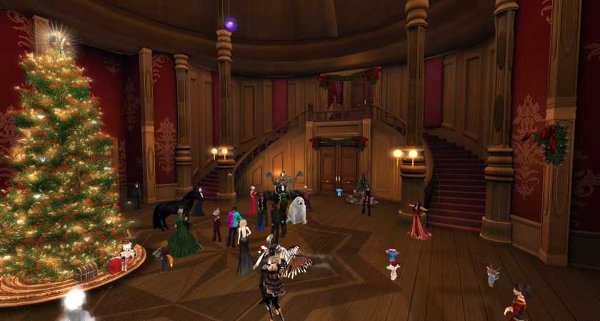 The Ball will be held in our special Designing Worlds Ballroom, created by Kayle Matzerath and available in his Garden of Dreams store. The Ball runs from 1PM till 4PM on Friday 16th December.There will be great music from DJ Elrik Merlin and DaveOSaurus, and a special appearance by the fabulous Raglan Shire Carollers – so don’t miss it!