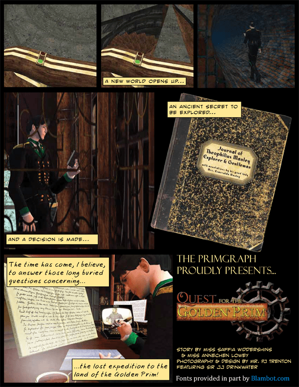 One of the features of The Primgraph was a standalone graphic novel, The Quest for the Golden Prim. The complete Chapter 1 and the start of Chapter 2 are available at Calameo.