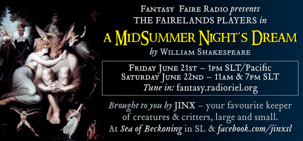 Tune in to Fantasy Faire Radio this Friday and Saturday to hear the rebroadcast of The Fairelands’ Players production of A Midsummer Night’s Dream. This